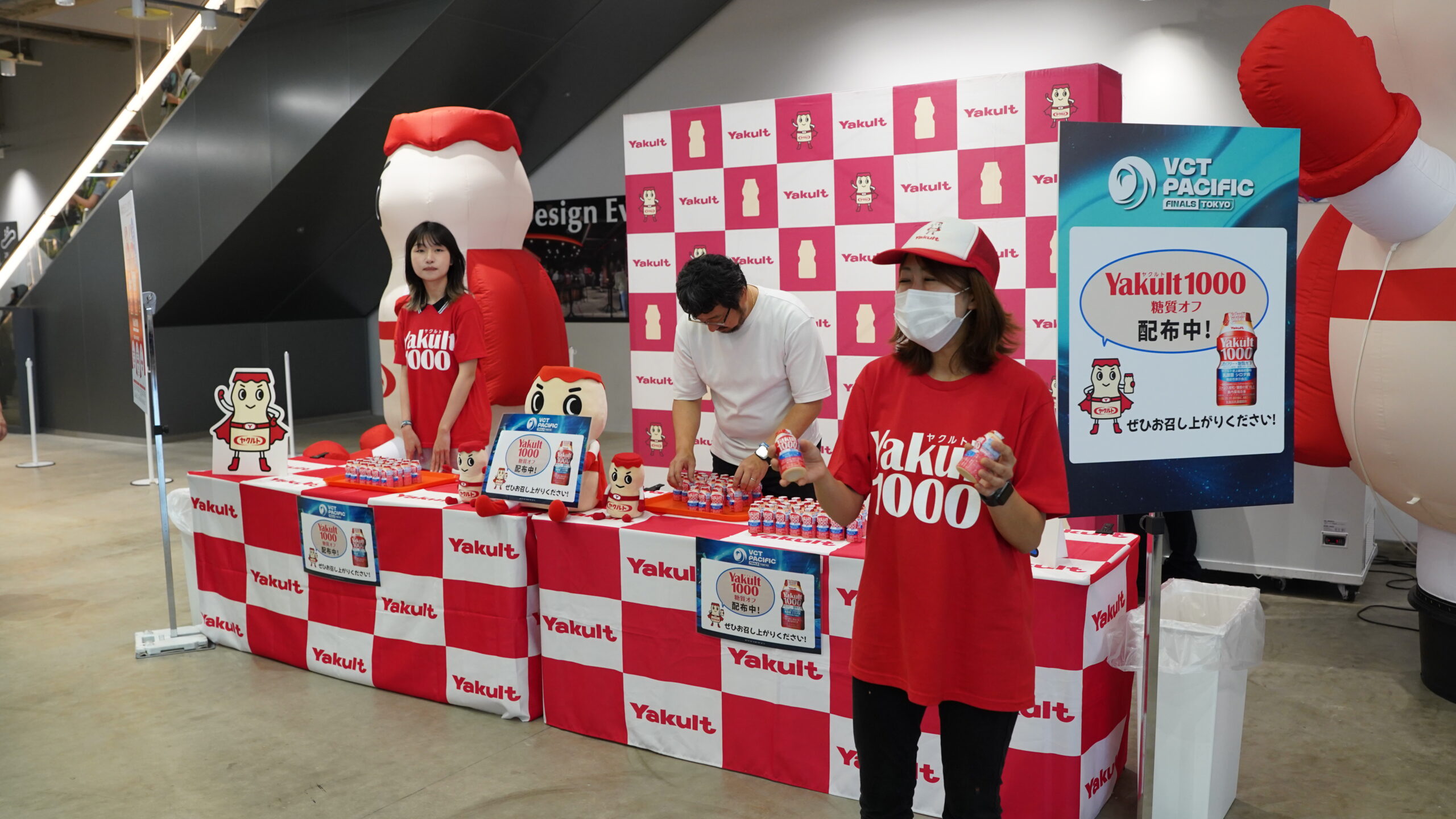 大きなヤクルトマンバルーンが目を引くヤクルトブースでは、前を通りかかるだけでヤクルトレディから乳酸菌飲料ををもらうことができた。