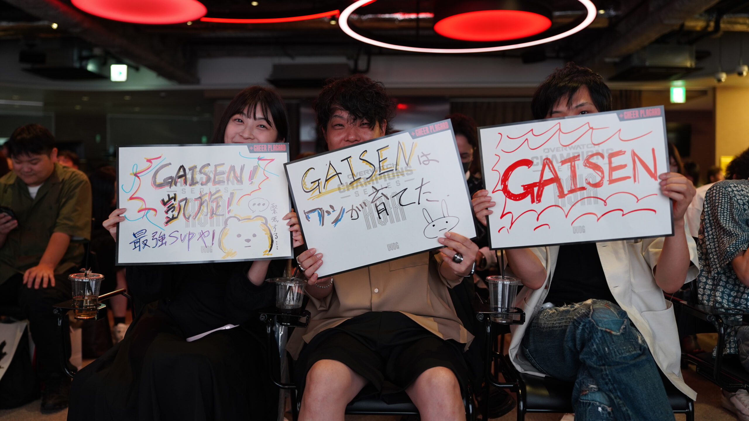 『OWCS』お馴染みのチアーボード。ファンの熱い想いが伝わる。