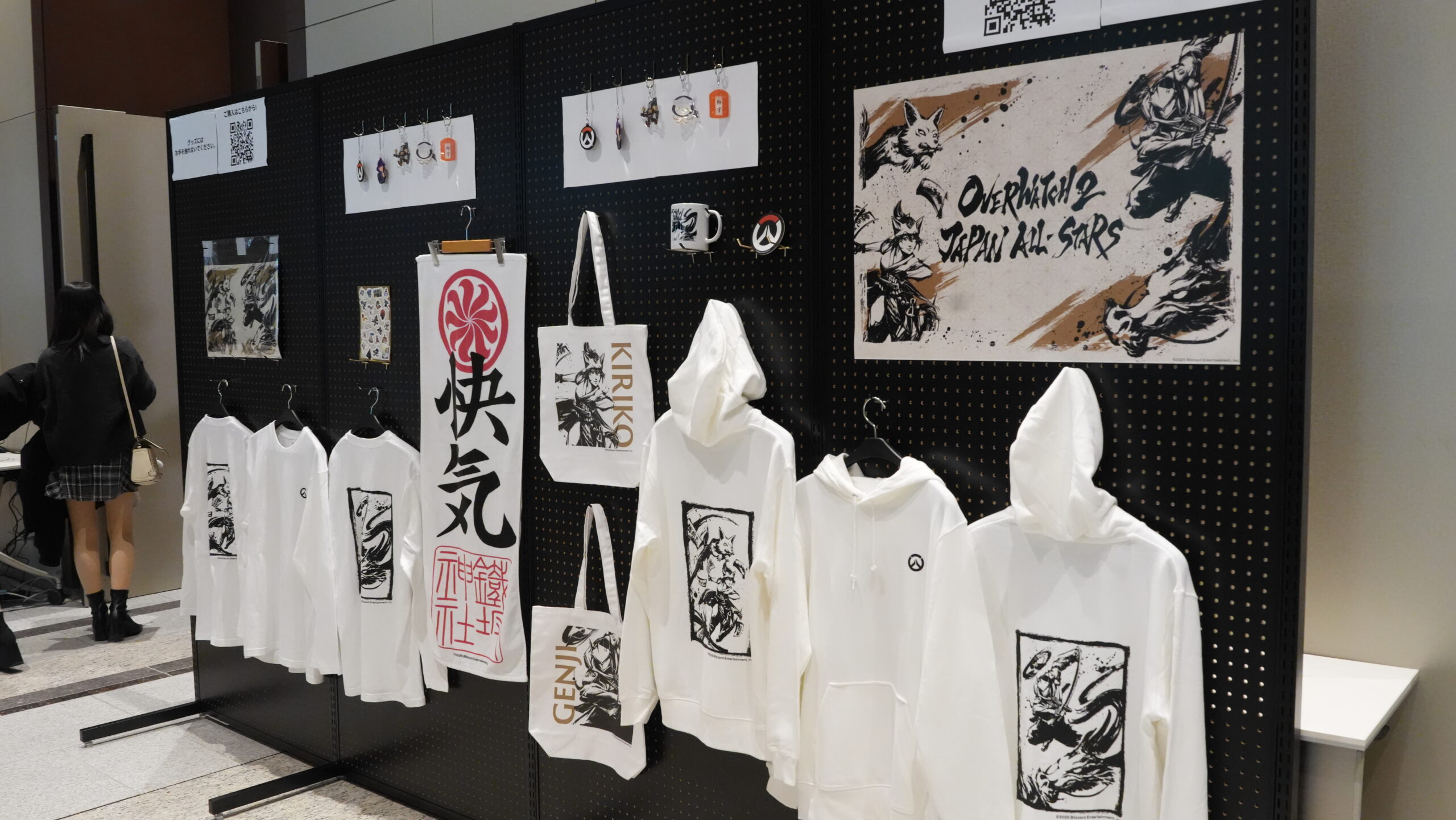 物販では『JAPAN ALL-STARS』オリジナルグッズを購入することができた。キーホルダー、マグカップ、マウスパッド、ポスターなど様々なグッズが販売。事前にオンライン販売も行っており、そこではゲンジのトートバッグが売り切れになっていた。