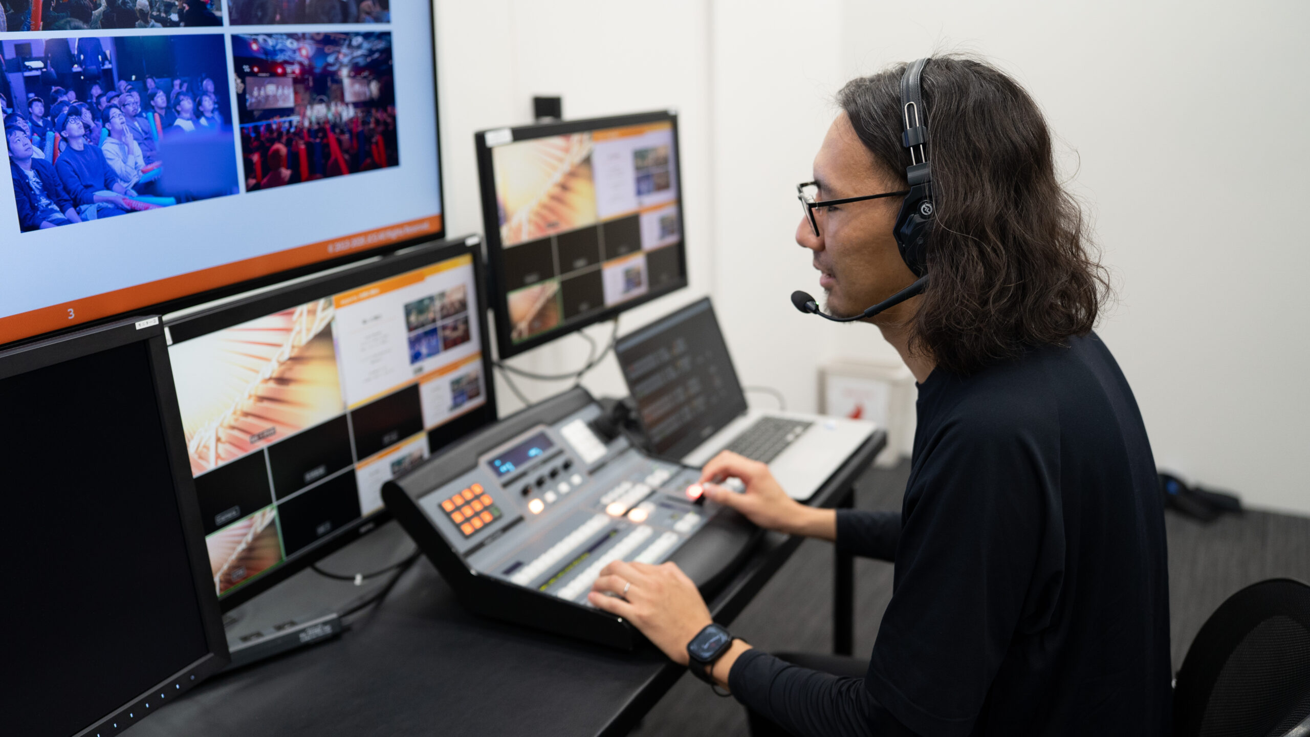 私の主な役割は『技術ディレクター』として番組の技術の指揮を取ることです。事前設計した技術システムの管理や技術オペレーションの進行管理、トラブルシュートの対応など技術全体の統括をします。また兼任で「映像オペレーター」として視聴者の皆様がご覧になる映像のスイッチング、合成やゲーム映像の管理を行ったりもしています。