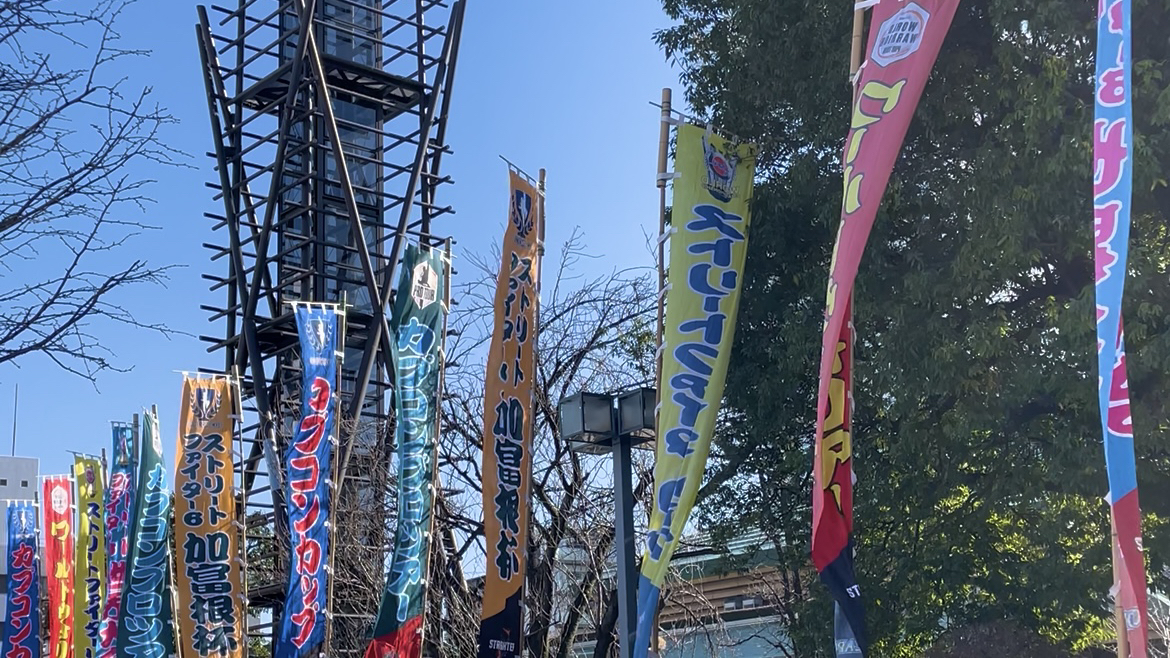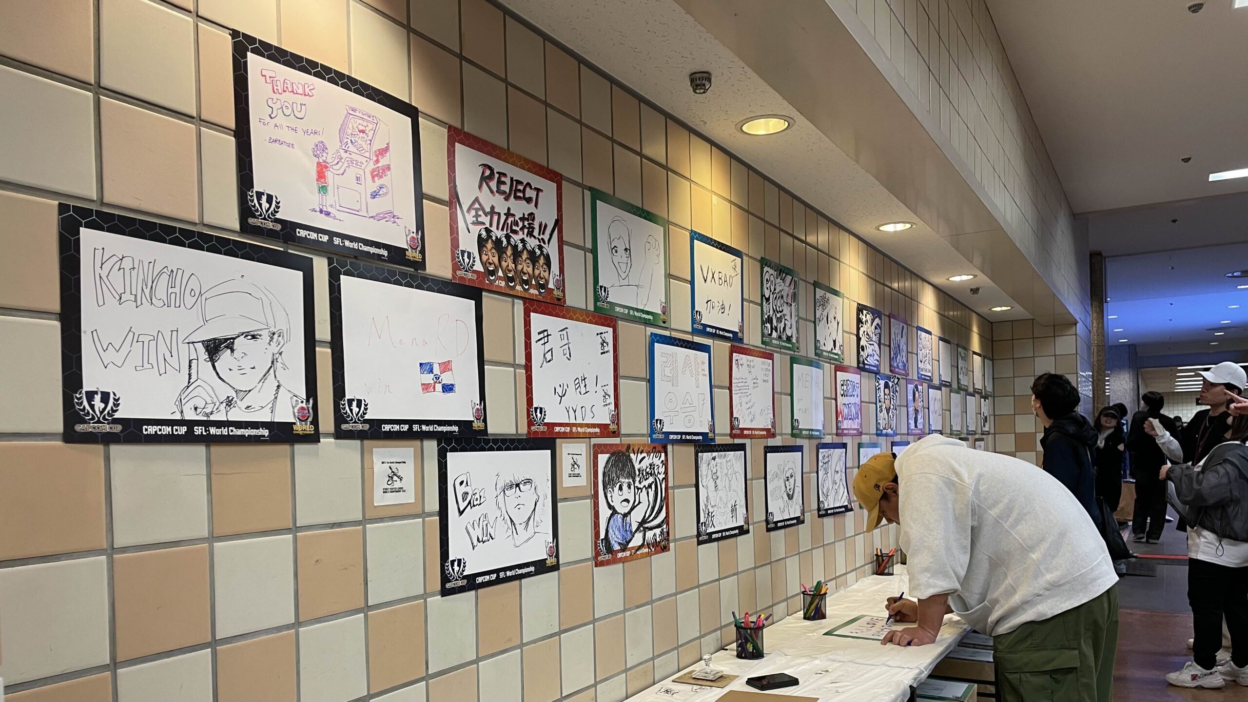 会場前には、「ストリートファイターリーグ」や「加富根杯(カプコンカップ)」といった幟旗が掲げられていた。