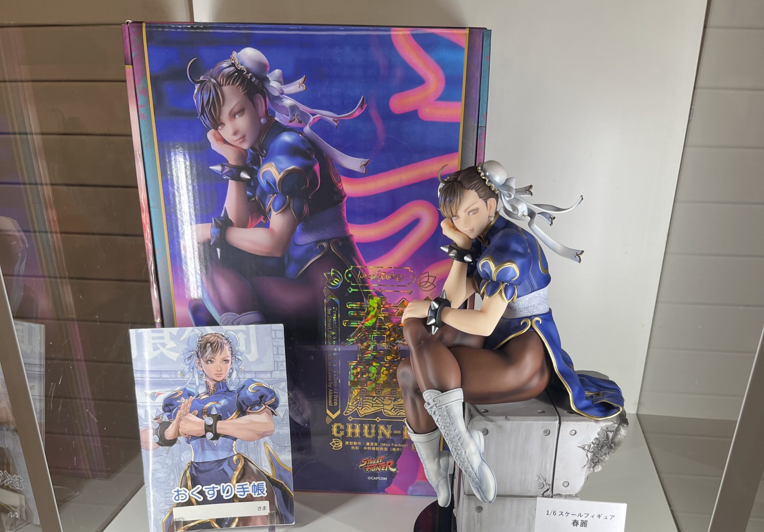 再販が決定した春麗の1/6スケールフィギュアなど、ぬいぐるみやキーホルダーといったカプコンオフィシャルショップのグッズが展示されていた。