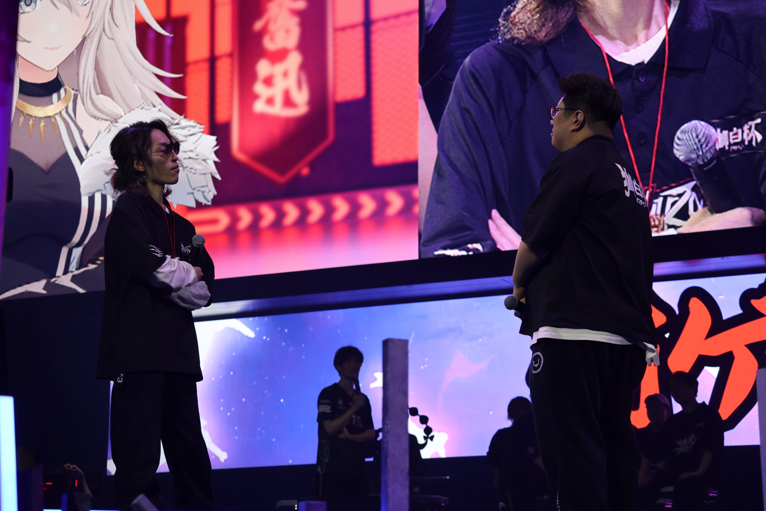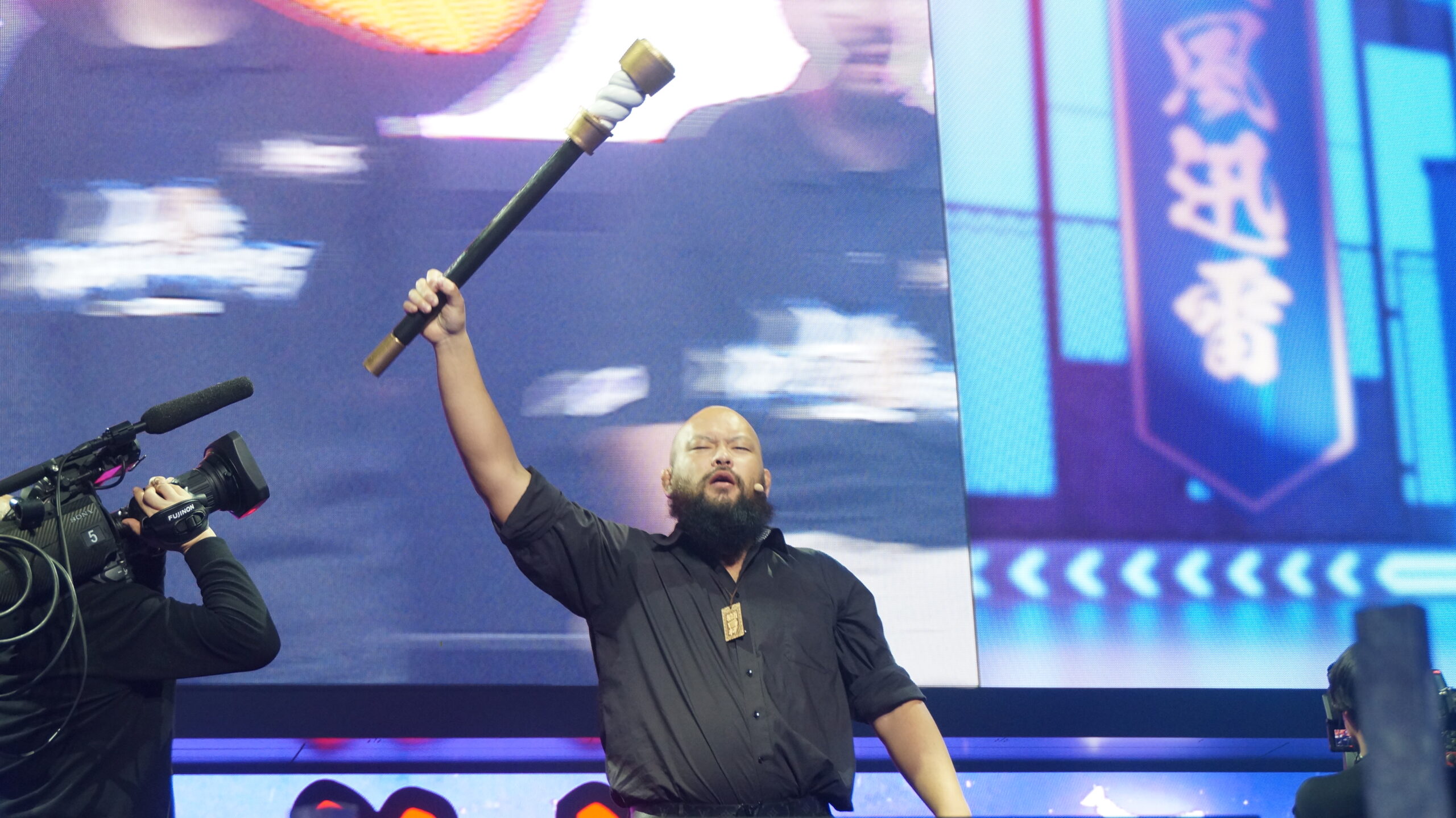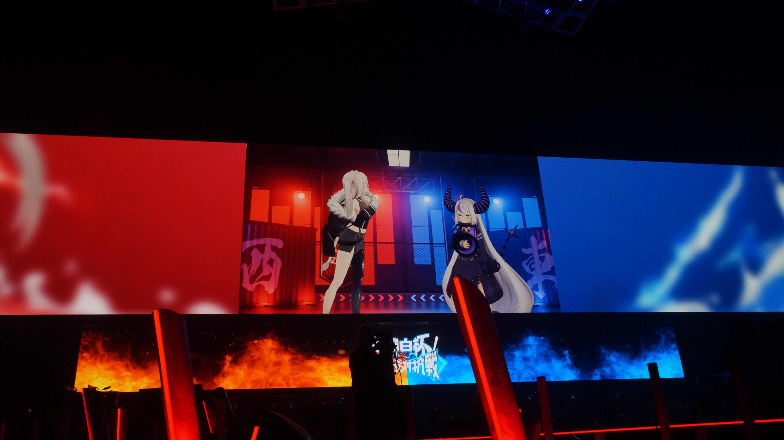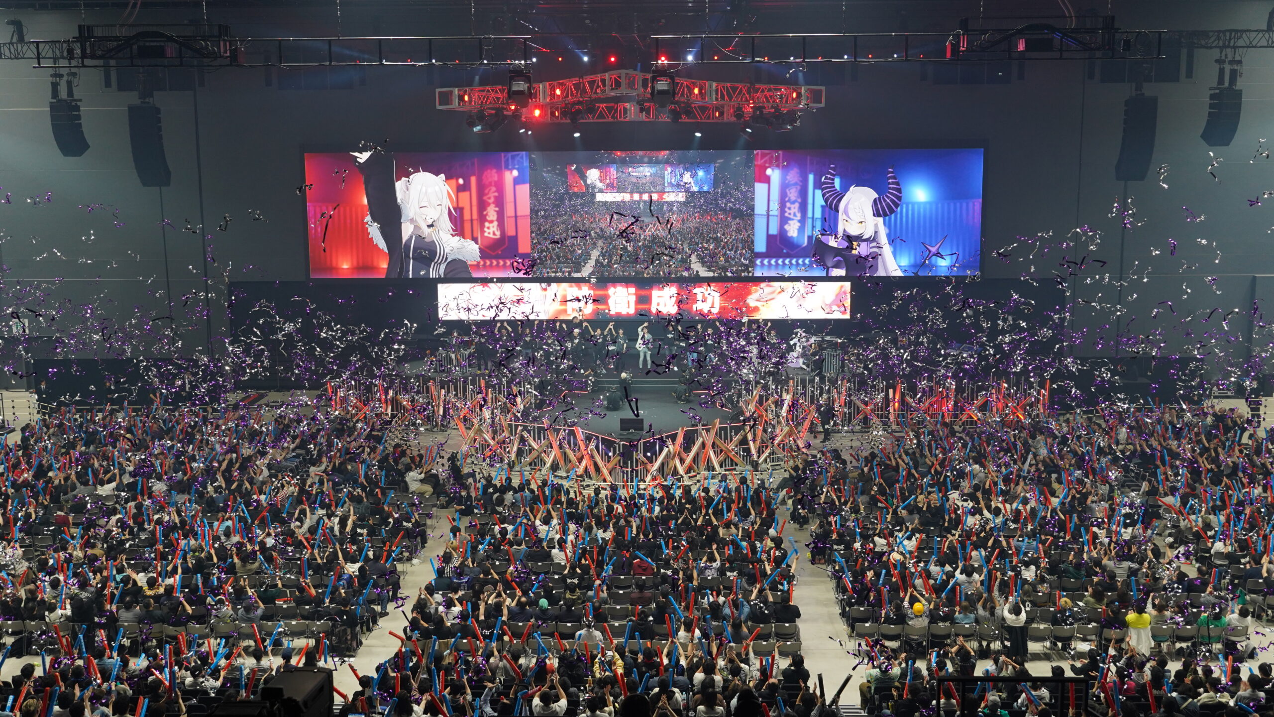 獅白ぼたん率いる地球を守る西軍 vs ラプラス・ダークネス率いる地球侵略を狙う東軍、という出演者も困惑気味のコンセプトと共に出演者の入場が開始。